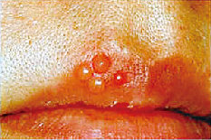 問題57 33歳の女性がのAさんが、上口唇の水疱と痛みを主訴に来院した。数年前から年に1〜2